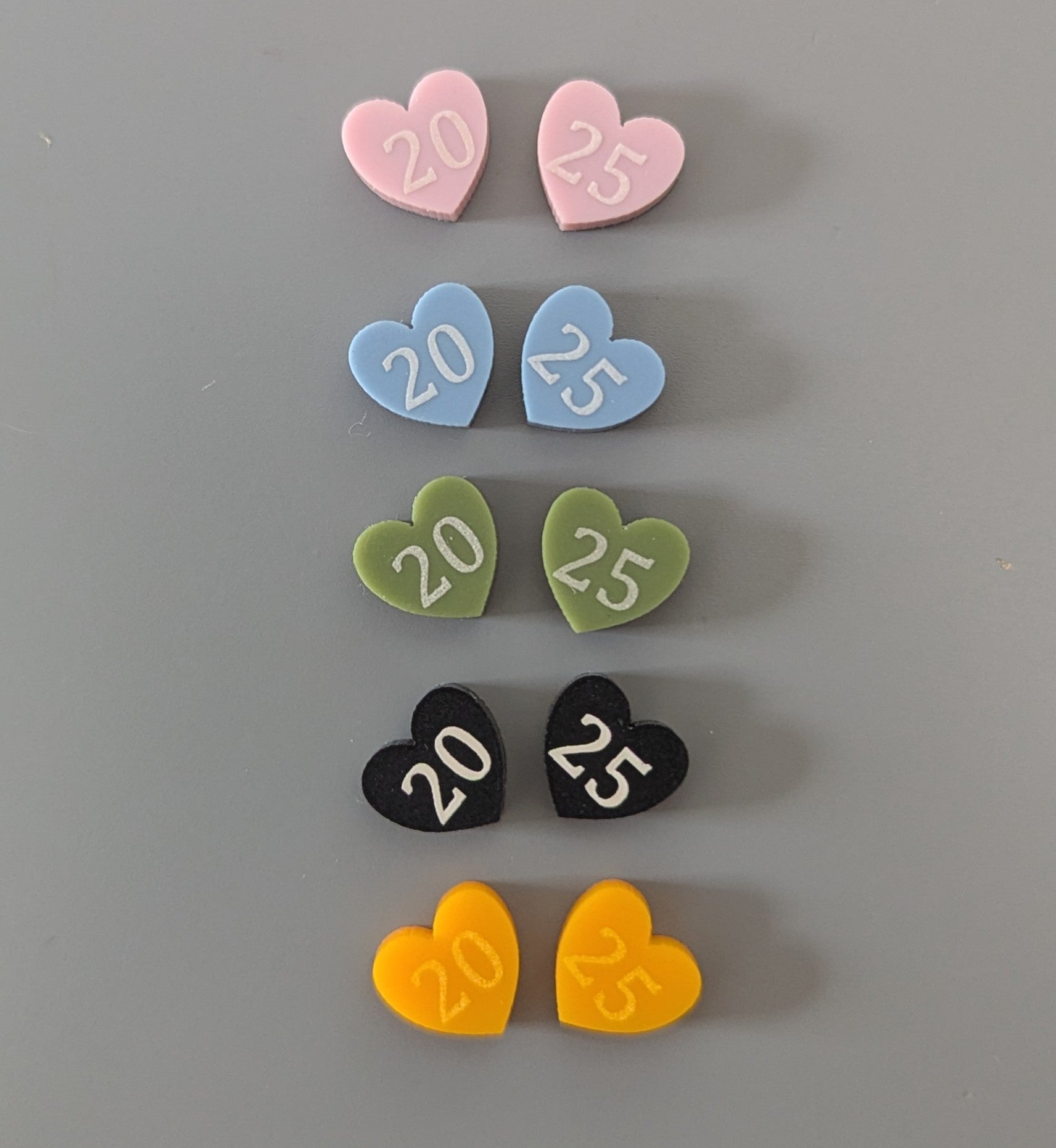 (Year will be engraved with 20 on the left heart and 25 on the right.)